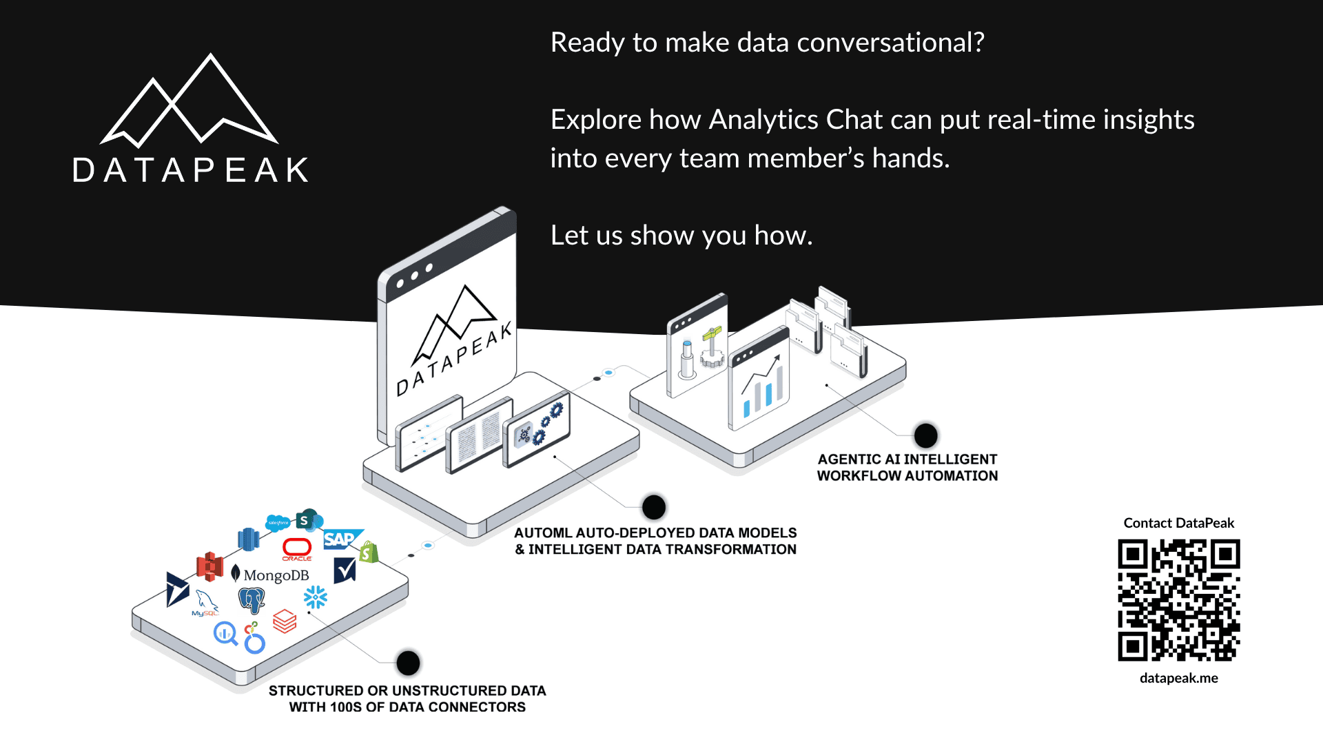 The future of analytics isn’t just visual. It’s conversational, predictive, and actionable. With DataPeak, business intelligence happens at the speed of conversation and decisions keep pace with the market.