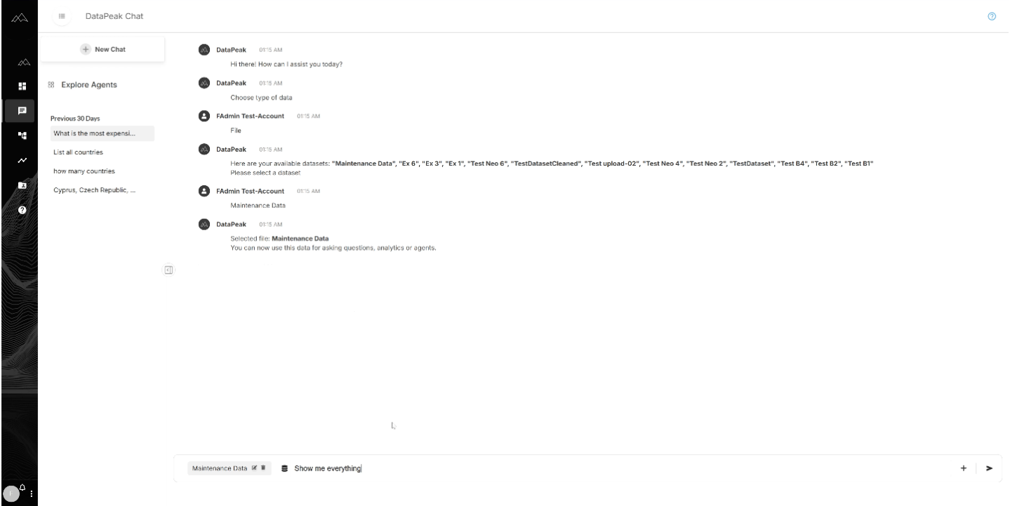 The DataPeak Chat system changes that. Instead of technical coding, it allows users to query datasets, generate graphs, and surface insights, all through a simple chat interface powered by agentic AI.