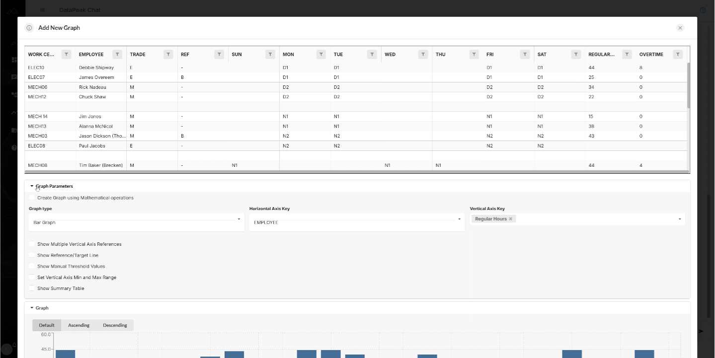 Not every query requires a full setup. With auto-analysis graphs, DataPeak generates quick visuals in response to simple questions.