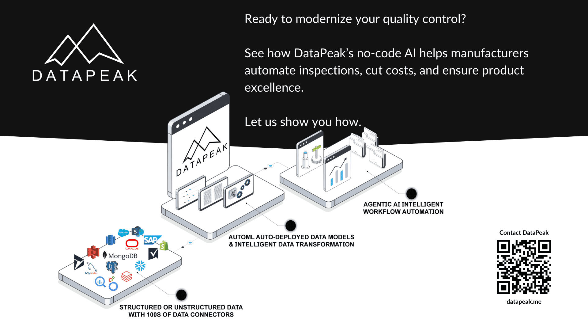 This is where no-code AI enters the picture. With platforms like DataPeak, manufacturers can build automated quality-control processes that are fast, adaptive, and accurate, all without needing coding expertise.